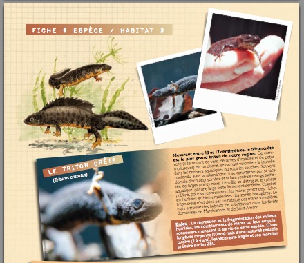 Un article sur les tritons crêtés illustré des photos de Nicolas Quendez dans la lettre de février 2013 du réseau Natura 2000 (du parc naturel régional Scarpe-Escaut) :